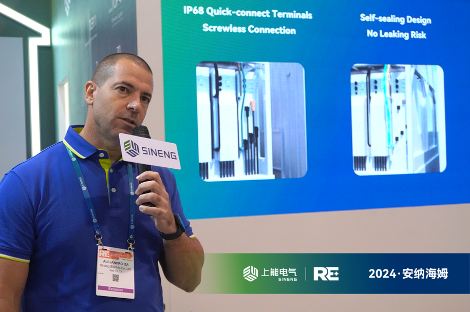 随后,上能电气美国国家经理Alejandro Iza先生详细介绍了400kW组串式储能变流器的技术特点与优势。作为适配600+Ah大电芯的组串式储能变流器,该产品采用了先进的智能液冷技术,CEC效率超过98.5%,具备灵活的功率组合能力。凭借其高效率、高可靠性和高收益特性,这款产品将为北美储能市场注入新活力,为当地客户提供更为高效和优质的服务体验。