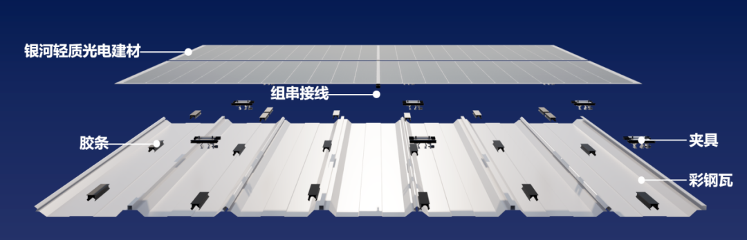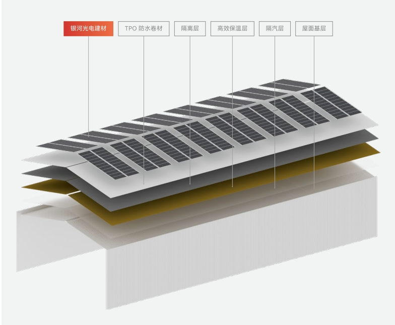 ● 轻质高效。银河产品每平方米重量最低仅5.6kg,加上辅材后,整个光伏系统的最低荷载也仅6kg/㎡。