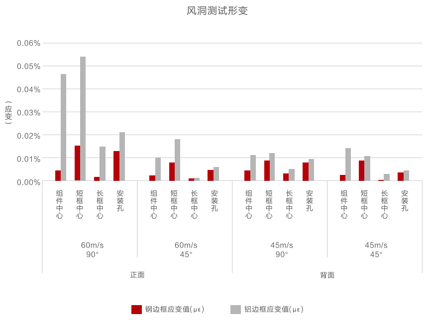 从产品选型上看,中来股份御风组件是经典的单玻结构,正面采用2.8mm全钢化玻璃、背面采用透明网格背板,边框采用的是御风合金钢边框,这样一种钢柔相济的结构赋予御风组件更全面的抗风能力。全钢化正面玻璃和透明网格背板的结合,避免了采用半钢化玻璃双玻组件在强风条件下由共振造成的玻璃爆裂问题,御风合金钢边框则为组件提供了比铝边框强3倍的边框材料强度和高至少2倍的安装孔抗撕裂能力,为组件在强风条件受到的各种应力和载荷变化提供了强有力的支撑。御风组件能够通过60m/s(相当于17级大风)的风洞测试,其各关键受力点在风洞测试中的应力应变量均远低于铝边框。御风组件可以通过正面6600Pa、背面3200Pa的静态机械载荷测试和正背面1000Pa、10000次循环的动态载荷测试,抗载荷能力均远超IEC标准的要求。