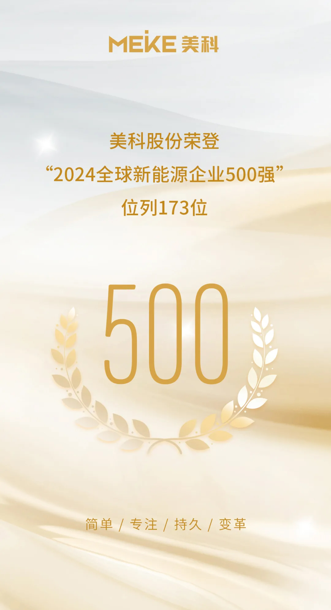 第173位!美科股份荣登2024年全球新能源企业500强榜单