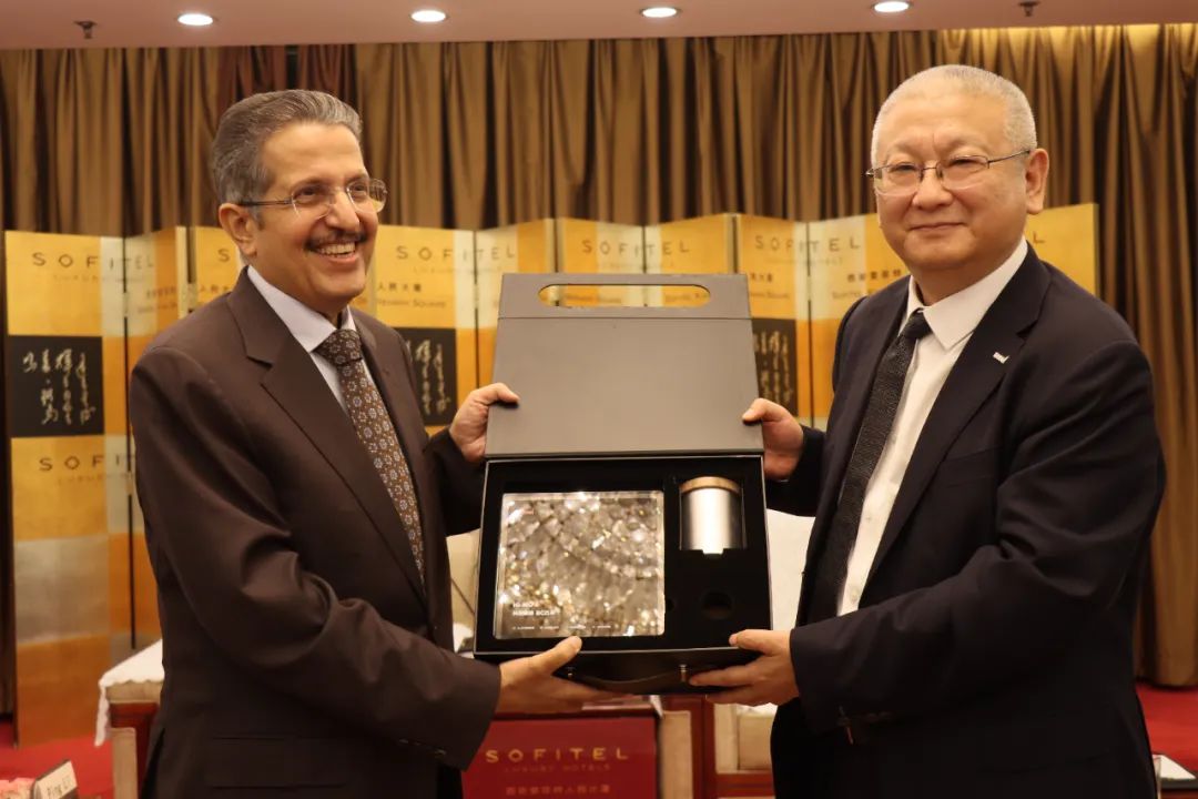 ■ 隆基绿能创始人、总裁李振国向ACWA Power创始人兼董事长穆罕默德·阿布纳扬赠送纪念品