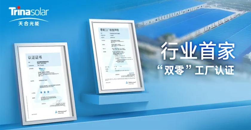近期,天合光能盐城大丰基地成功通过TÜV莱茵认证审核,荣获“零废”工厂认证证书和2023年度“零碳”工厂(Ⅰ型)三星认证证书,成为光伏行业首个获得该机构“零废”工厂证书的企业。天合光能也成为业内首个获得TÜV莱茵“双零”工厂认证的企业。