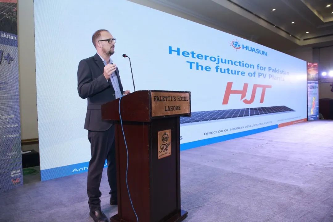 持续深耕巴基斯坦的过程中,面对当地优越的光照条件与日益增长的用电需求,华晟异质结光伏产品展现出十足的实力与底气。华晟欧洲业务发展总监Christian Comes凭借多年在异质结领域的丰富经验,为现场参会伙伴全面介绍了华晟异质结产品的独特魅力与未来前景。