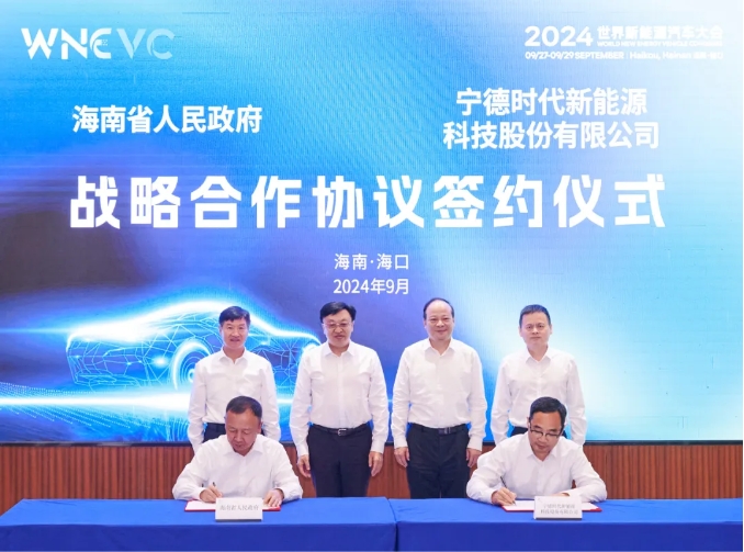 9月28日,海南省政府与宁德时代在海口签署战略合作协议。海南省委书记冯飞、省长刘小明,宁德时代董事长兼CEO曾毓群、监事会主席吴映明见证签约。
