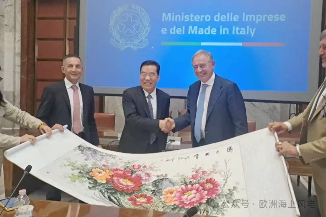 除明阳智能董事长张传卫与和Renexia总经理Riccardo Toto外,意大利企业与“意大利制造”部部长Adolfo Urso、意大利环境和能源安全部负责人Antonio Scino也参与了本次重要的签约仪式。
