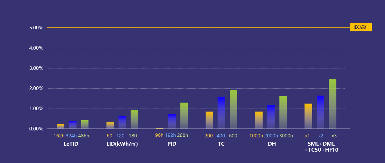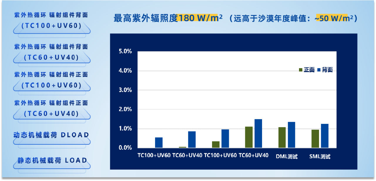 在IEC标准的各项常规与加严测试中,晶澳沙漠光伏组件方案均表现优异,顺利通过三倍加严LeTID/冷热循环/机械载荷测试,意味着该方案能够应对温度高、温差大、多飓风的沙漠环境。