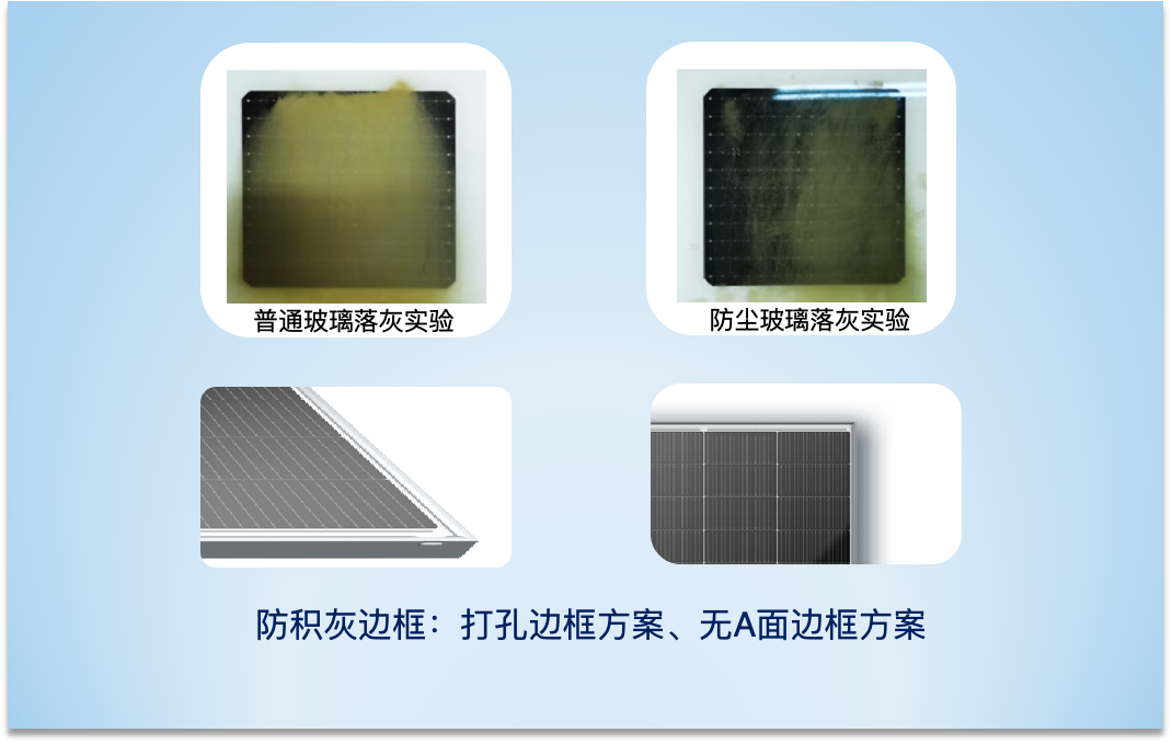 值得一提的是,对于治沙,晶澳的方案开发工作从未止步。目前,晶澳已提出具备“自清洁”能力,及更强载荷性能的两大沙漠光伏组件升级方案。其中,“自清洁”方案是基于防尘玻璃和防积灰边框,可减少组件的灰尘附着,降低清洗运维压力,提升发电量;更强载荷性能方案则基于背面玻璃结构和边框结构的优化,可保证组件在强风天气的稳定运行。