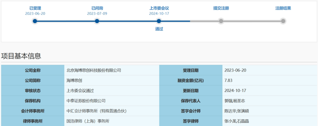 2024年10月17日,上交所官网公告,北京海博思创科技股份有限公司(简称“海博思创”)科创板IPO申请获得上市委审议通过(过会)。海博思创成为新“国九条”颁布之后首家过会的新能源企业。