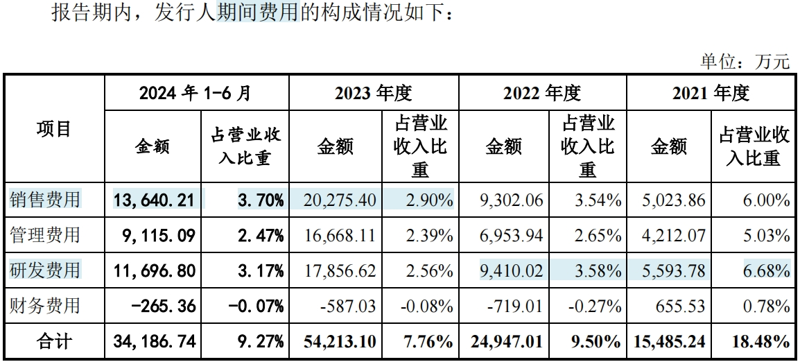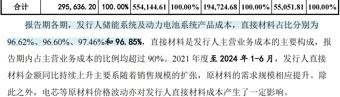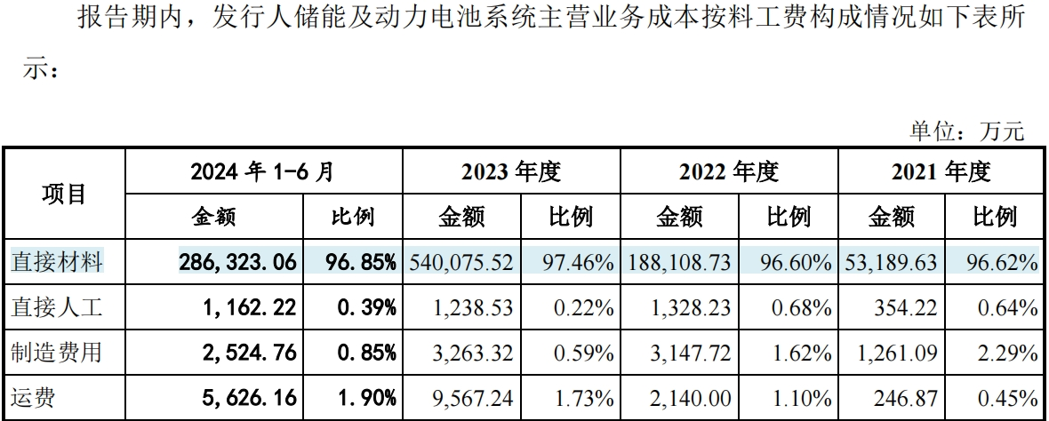 原材料采购依赖宁德时代。海博思创对外采购的主要原材料之一为电芯,2021-2023年,公司向宁德时代采购电芯的金额占其电芯采购总额的比例分别高达87%、99%和89%,虽然2024年上半年公司向亿纬锂能采购金额占比大幅上升,但仍存在采购渠道单一对成本影响较大的风险。