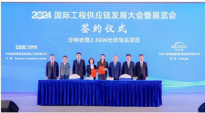 10月17日,在2024国际工程供应链发展大会上,中信博与中国能源建设集团国际工程有限公司签订沙特哈登2.3GW光伏电站项目订单,双方将在中东能源领域开展又一次深度合作。这次合作彰显了中信博作为全球跟踪系统领军企业在中东市场的认可度,也是中资企业协同出海、高质量共建“一带一路”的重要成果。