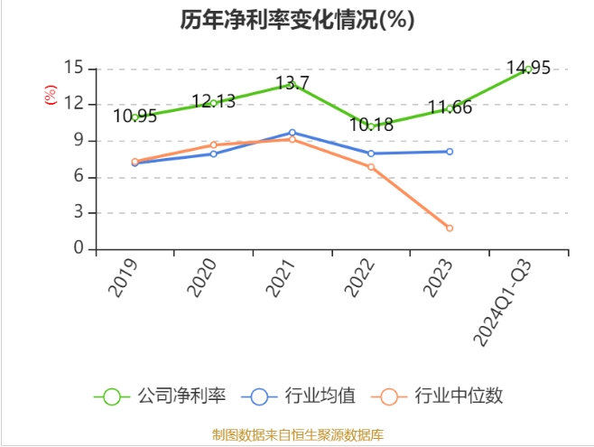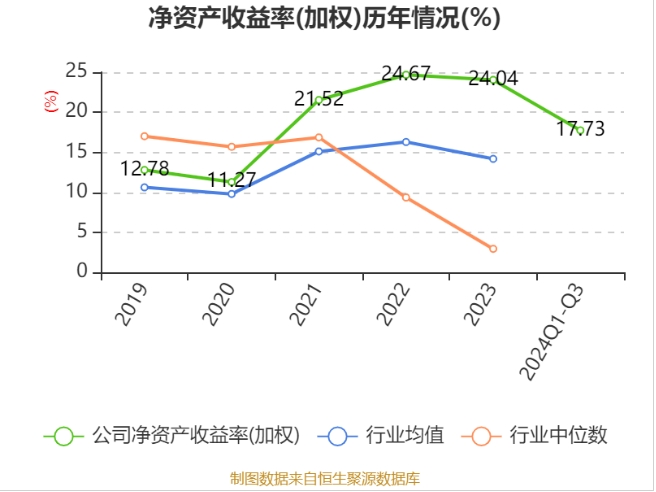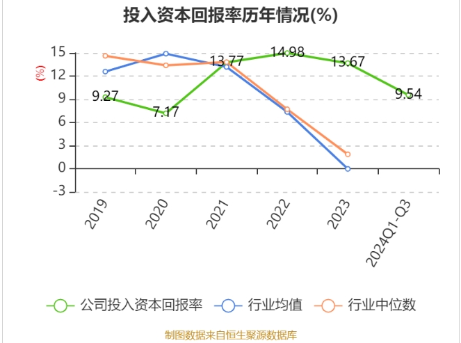 盈利能力方面, 2024年前三季度公司加权平均净资产收益率为17.73%,同比下降0.52个百分点。公司2024年前三季度投入资本回报率为9.54%,较上年同期下降0.3个百分点。