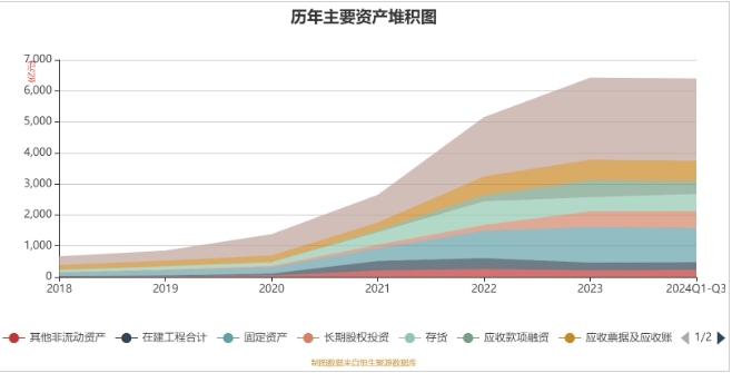 负债重大变化方面,截至2024年三季度末,公司其他非流动负债较上年末减少82.48%,占公司总资产比重下降3.63个百分点;应付票据及应付账款较上年末减少3.99%,占公司总资产比重下降1.83个百分点;预计负债较上年末增加26.71%,占公司总资产比重上升1.66个百分点;一年内到期的非流动负债较上年末增加129.45%,占公司总资产比重上升1.2个百分点。
