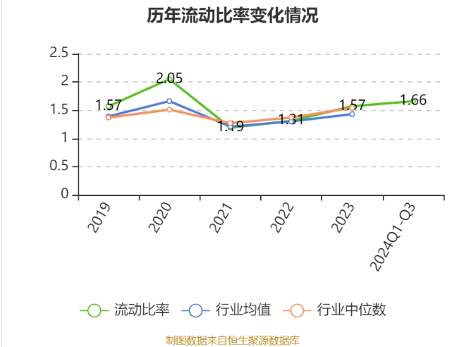 2024年前三季度,公司流动比率为1.66,速动比率为1.46。