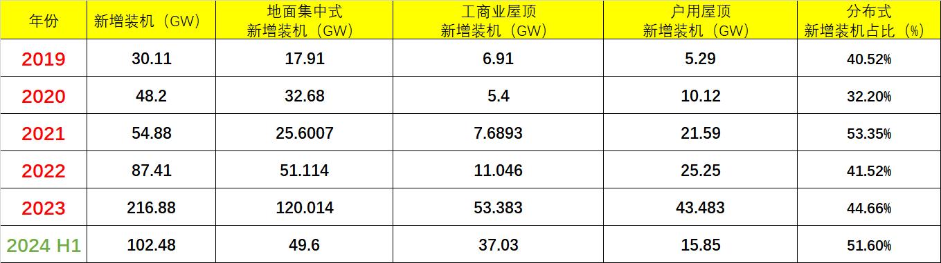 近年来,分布式屋顶电站发展迅速,在全年光伏新增装机中,几乎占据半壁江山。截止2024年上半年,分布式新增装机占比51.60%,也是继2021年后,分布式新增装机再次超越集中式新增装机。