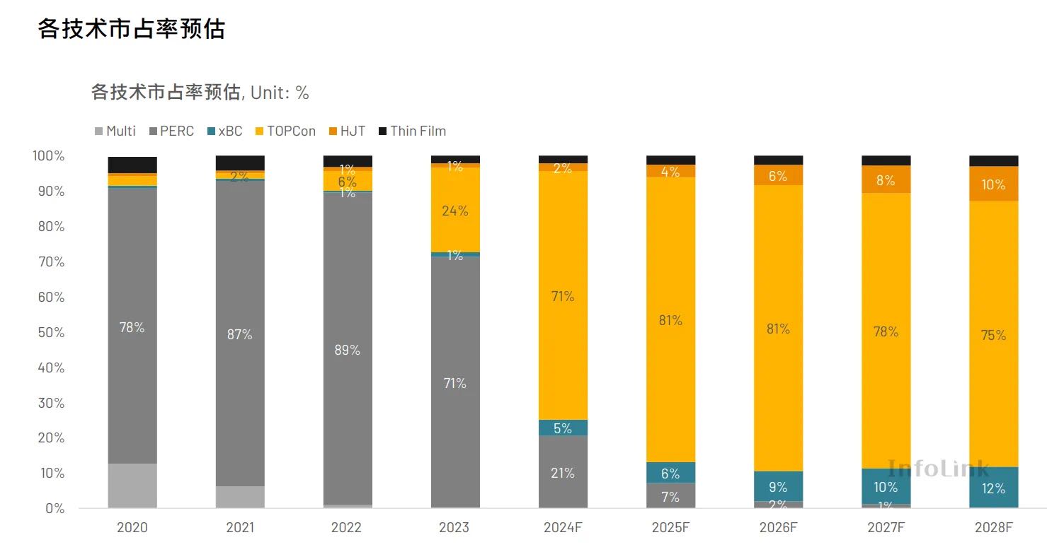 ③InfoLink Consulting报告指出:未来4年,TOPCon技术产品占比平均达到70%。