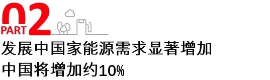 到2050年中国国内生产总值(GDP)快速增长,人均购买力GDP增加180%,经济的繁荣使得能源需求将增加10%。