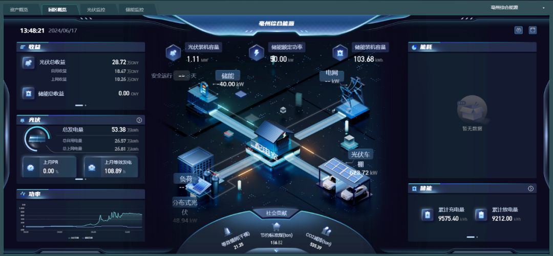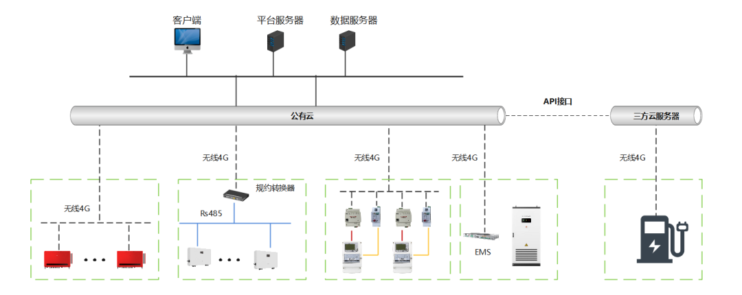 固德威智慧能源WE平台通过IoT物联网技术和云云对接,实现了多品牌光储设备与充电桩运营平台的数据接入,对于亳州高铁南站示范项目进行系统化管理。