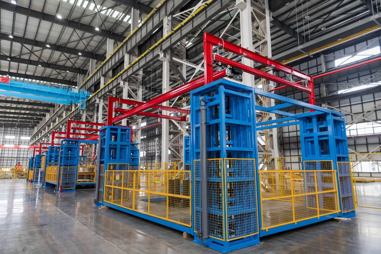 一期建设的1GW自动化线由极板自动焊接线、流道自动加工线、板网电极自动焊接线、电解槽组装线四部分组成。产线融合自动控制、声光电检测、VI算法、大数据、云平台等多种技术,实现全球领先的“4个100%”智能产线,即 100%自动化、100%质量自判定、100%产品数字化、100%信息共享化。实现产品一致性、质量可靠性、履历可追溯性、全生命周期可视性。