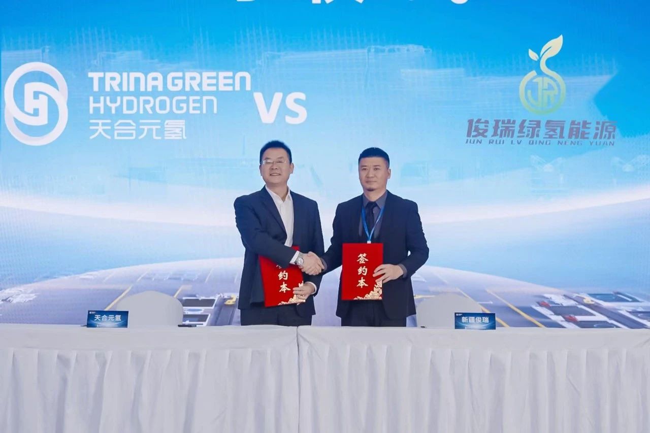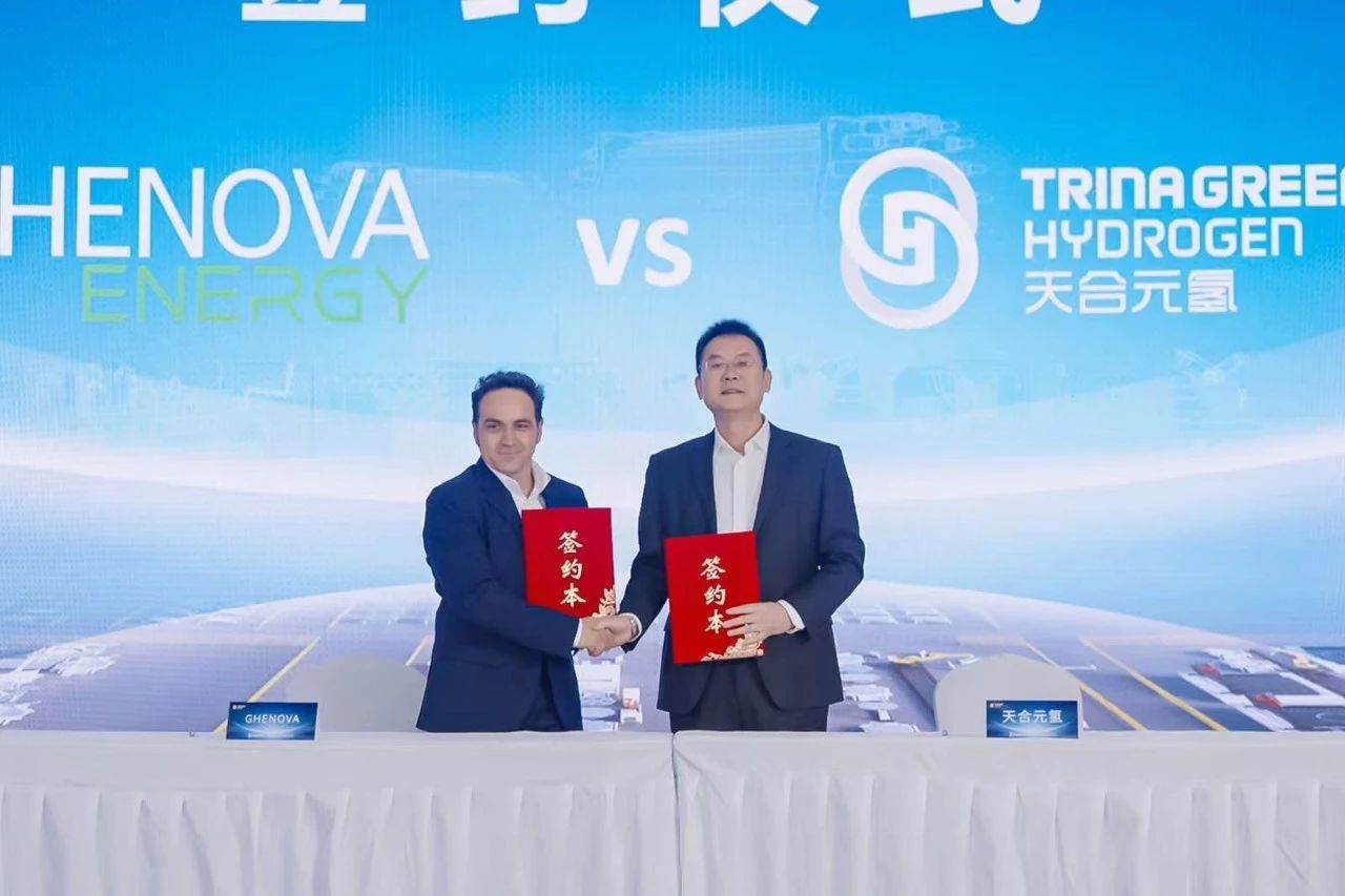 随着天合元氢扬州生产基地的落成,一大批海内外能源企业已经对天合元氢的产品表现出浓厚的兴趣,在投产仪式上,天合元氢与俊瑞绿氢能源(集团)有限公司、西班牙GHENOVA集团签署了战略合作协议,未来双方将充分利用各自品牌优势、技术优势、客户优势,建立信息和资源共享平台,结成长期合作伙伴关系,实现优势互补、合作共赢。