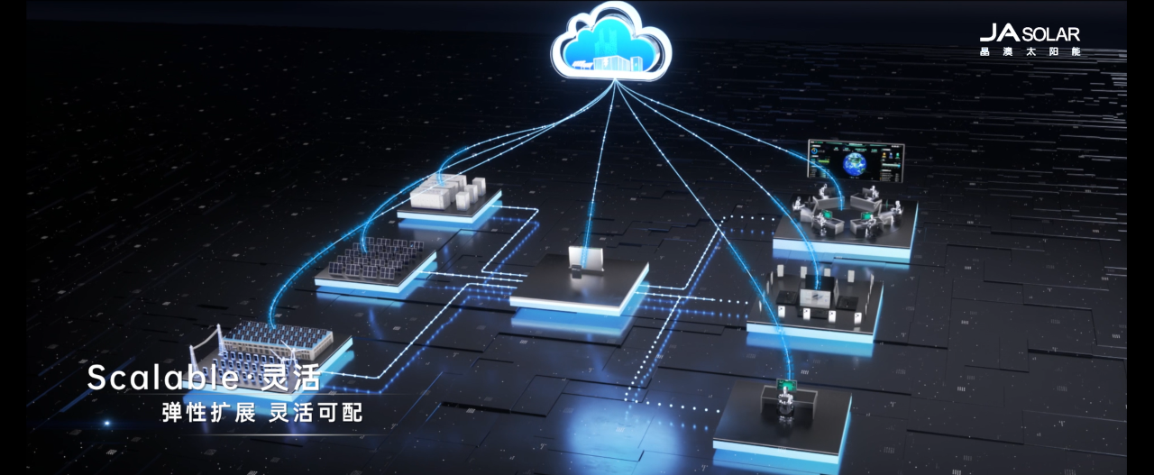 该产品矩阵的发布,标志着晶澳已成功构筑储能“云-边-端”一体技术体系,实现了业务和技术的数字融合,为确保储能系统以最优状态运行,及不同能源类型之间的互通互联和协同优化,提供了全新高度的解决方案。