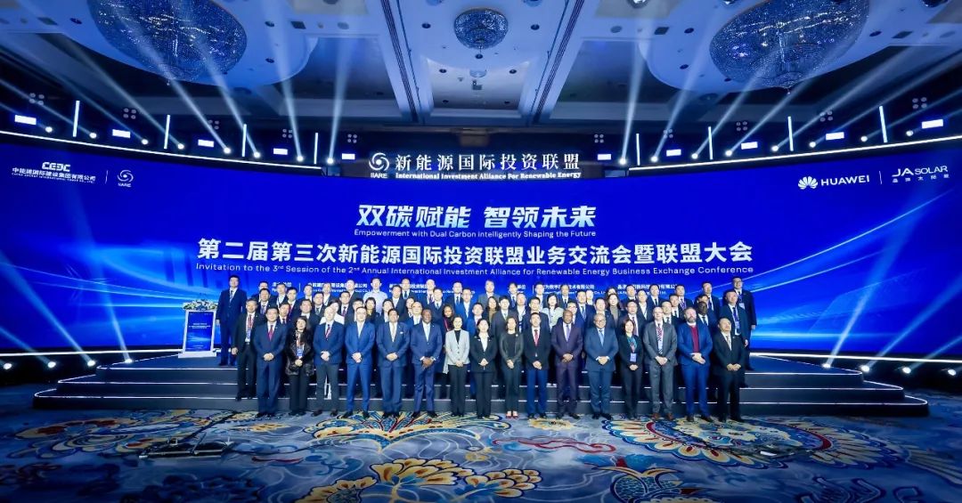 11月5日,以“双碳赋能 智领未来”为主题的第二届第三次新能源国际投资联盟业务交流会暨联盟大会在北京盛大召开。本次大会由中能建国际建设集团有限公司(简称“中国能建国际集团”)、新能源国际投资联盟主办,晶澳科技联合华为数字能源承办,来自政府部门、驻华使馆、行业协会、龙头企业等数百位嘉宾代表共同参会。