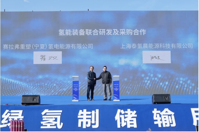 “宁夏太阳山绿氢制储输用一体化示范项目”由赛拉弗重塑(宁夏)氢电能源有限公司(上海重塑集团、江苏赛拉弗合资公司)投资建设,主要布局绿电制氢、氢能交通、绿氨绿甲醇、氢氨甲醇耦合化工等一体化产业生态,打通风、光、氢、氨产业链条。正泰与上海重塑集团的合资公司——上海泰氢晨为项目提供制氢系统与解决方案。