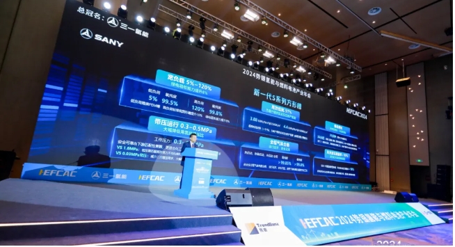 三一氢能董事长袁丹先生在发布会上详细介绍了新一代S系列方形槽的技术突破和卓越性能。S系列方形槽宽负载范围、启动全过程气体纯度达标、运维便利等优势赢得了与会专家和企业的广泛关注。S系列方形槽主打高电密、大标方、宽负载,集成了行业顶尖的复合隔膜、贵金属电极、纯镍等材料。电解单元采用零极距设计和独立循环结构,流场与温度场不断仿真改进,支持0.5MPa带压运行,可实现12000电密稳定运行。