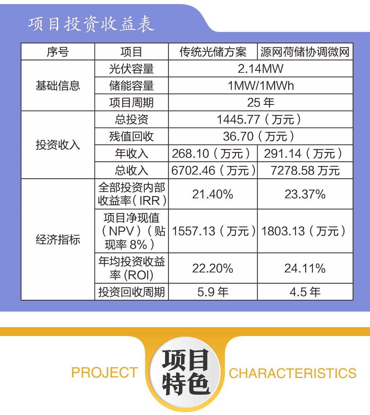 较传统光储系统额外提升收益10.5%(其中降低基础容量电费6%,光伏自发自用收益提升2%,用能精细化管理节约2.5%),提升光伏自发自用率10%,缩短回收周期1.4年。