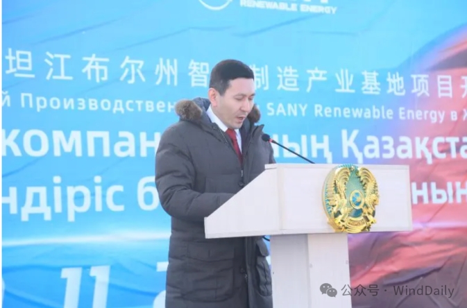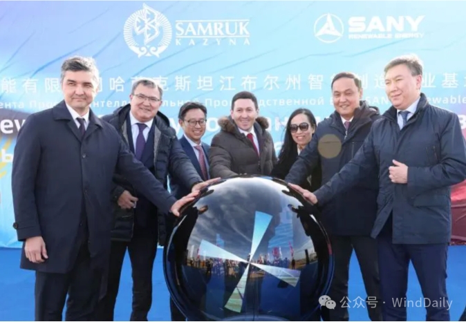11月29日,三一重能哈萨克斯坦风电装备制造基地正式开工。哈萨克斯坦江布尔州州长叶尔波尔·卡拉舒克耶夫、萨姆鲁克基金董事会主席努尔兰·扎库波夫、中国驻阿拉木图总领事蒋薇、三一重能股份有限公司董事长周福贵等嘉宾出席开工仪式并发表讲话。