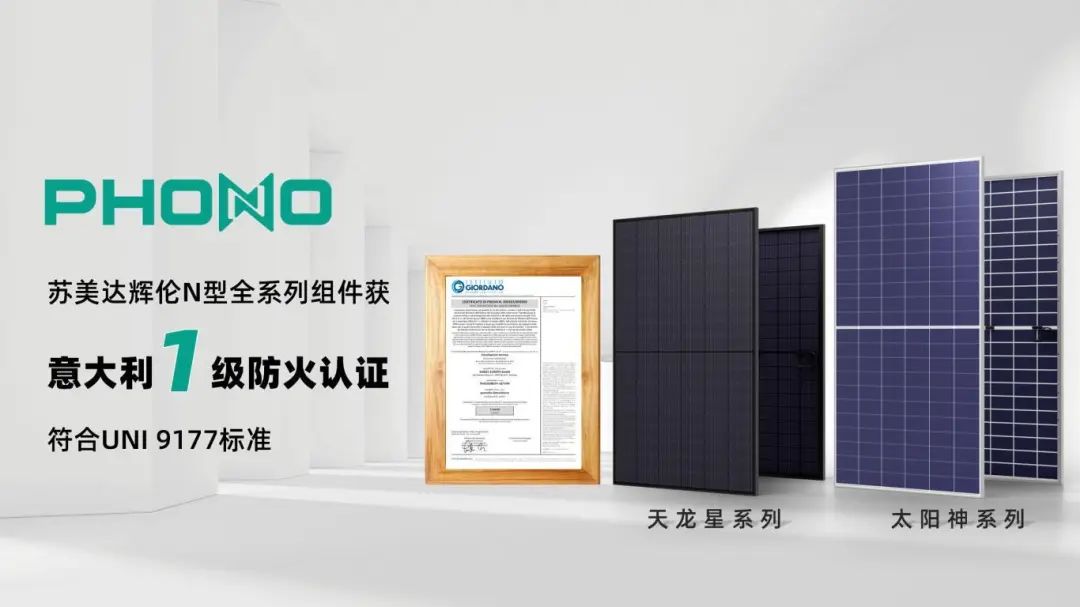 品质护航!苏美达辉伦N型全系列组件获意大利一级防火认证