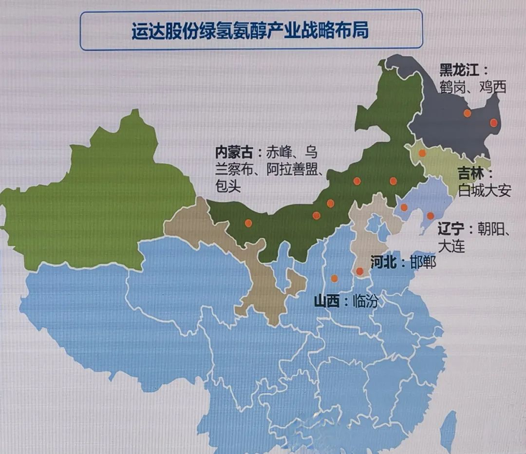 运达股份在内蒙古阿拉善、赤峰、河北邯郸、辽宁朝阳、吉林白城等全国多地进行绿色甲醇产业布局,助力我国双碳目标的实现。