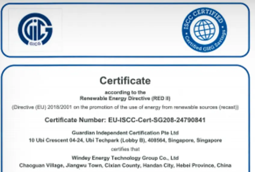 2024年9月20日,运达股份邯郸绿色甲醇项目喜获全国首张以农场/种植园为原点的绿色甲醇原料端国际可持续性和碳认证(以下简称ISCC)证书,标志着我国ISCC EU认证范围领域取得新的突破。