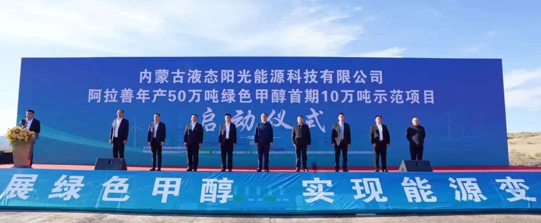 2024年10月,阿拉善年产50万吨绿色甲醇首期10万吨示范项目正式启动,该项目是中国首个50万吨级电解水制氢耦合工业捕集的二氧化碳合成绿色甲醇项目。