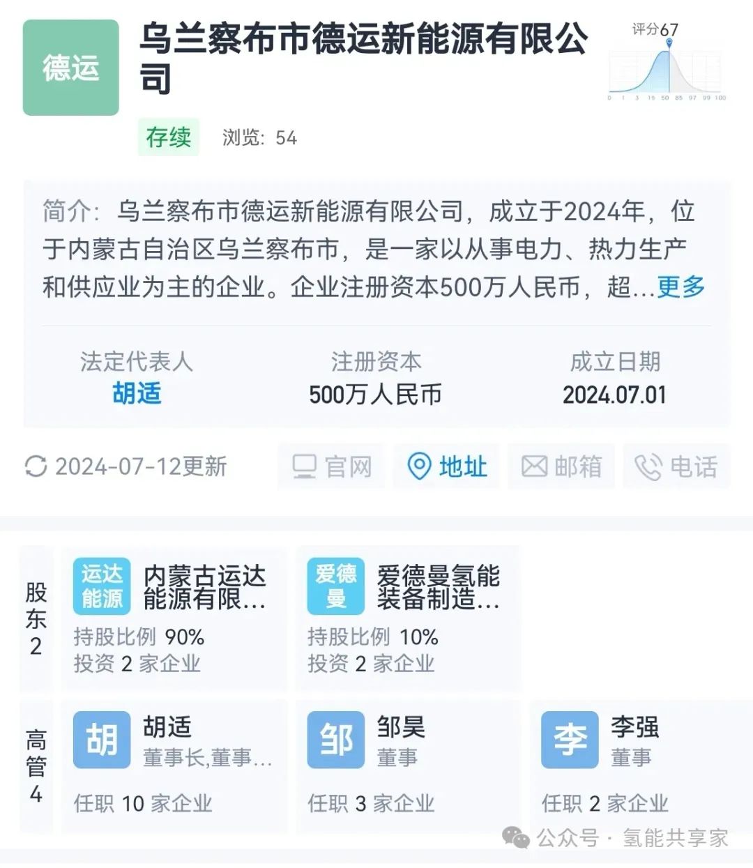 2024年7月1日,运达与爱德曼成立合资公司,在乌拉察布投厂,涉及电解槽装备制造。爱德曼是一家氢能源装备高端制造平台公司,自主研发燃料电池及相关产品,包括车船用动力系统、兆瓦级分布式发电单元、方形电解槽等全系列氢-电、电-氢转化设备等。