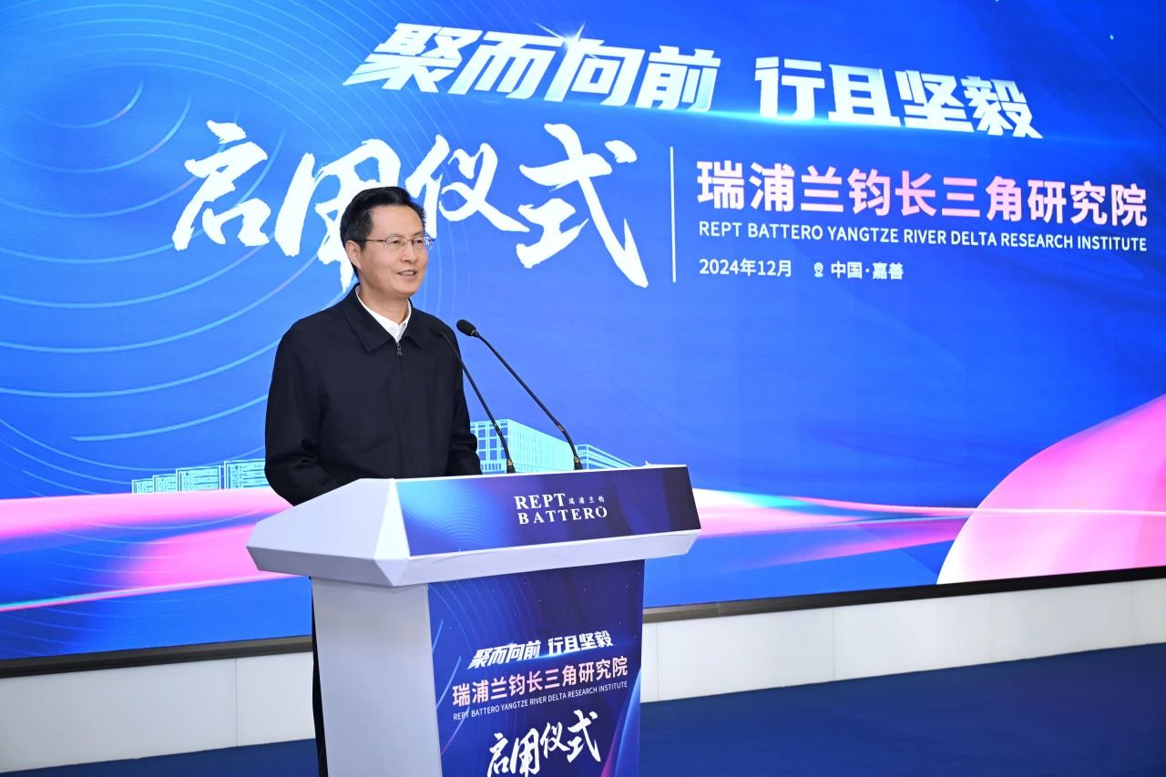 项光达主席在仪式中发表致辞。他提到,创新文化和创新制度是企业拉开市场竞争差距的关键。企业发展应秉持长期主义战略“卷技术”,重视技术研发。瑞浦兰钧长三角研究院的成立不仅是企业自身技术和经营发展的需要,更是响应高质量发展战略、推动能源结构转型的重要举措。