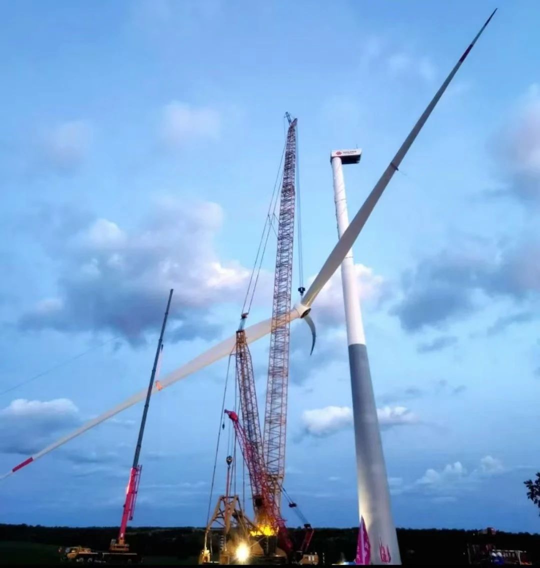 在安徽泗县广袤的平原上,一座座凌空挺拔的风机叶片在90多米的高空再次拨开云雾,徐徐转动,“大国重器”在皖北大地上再次彰显了它的“驭风”实力。