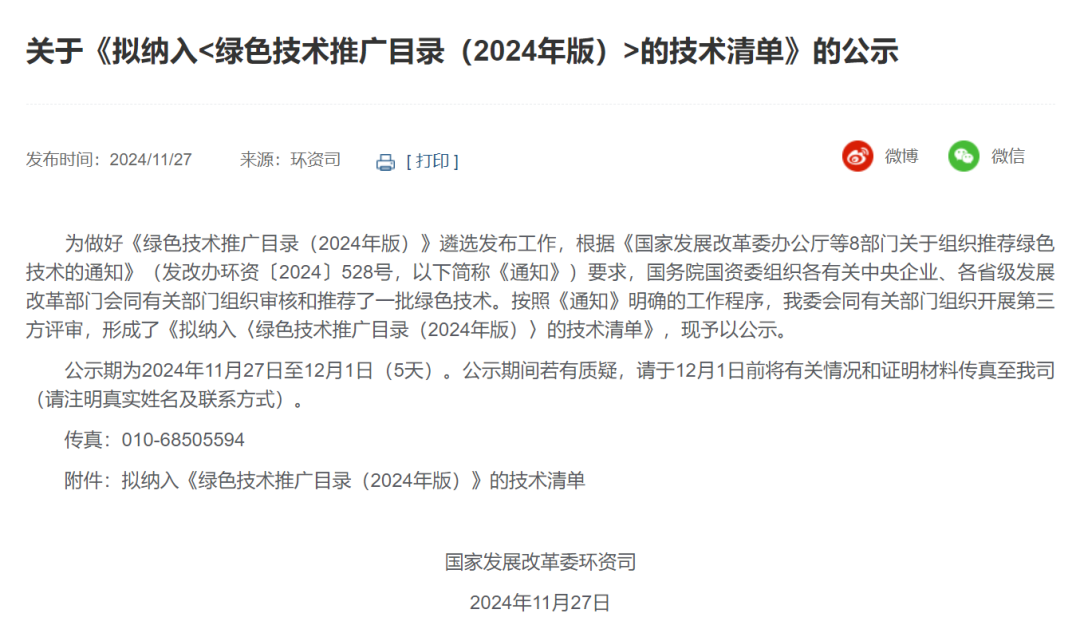 近日,国家发改委环资司公示了《拟纳入〈绿色技术推广目录(2024年版)〉的技术清单》。在“能源绿色低碳转型”类别的“新能源与清洁能源装备制造”中,西子洁能“规模化熔盐储能技术”成功入选。