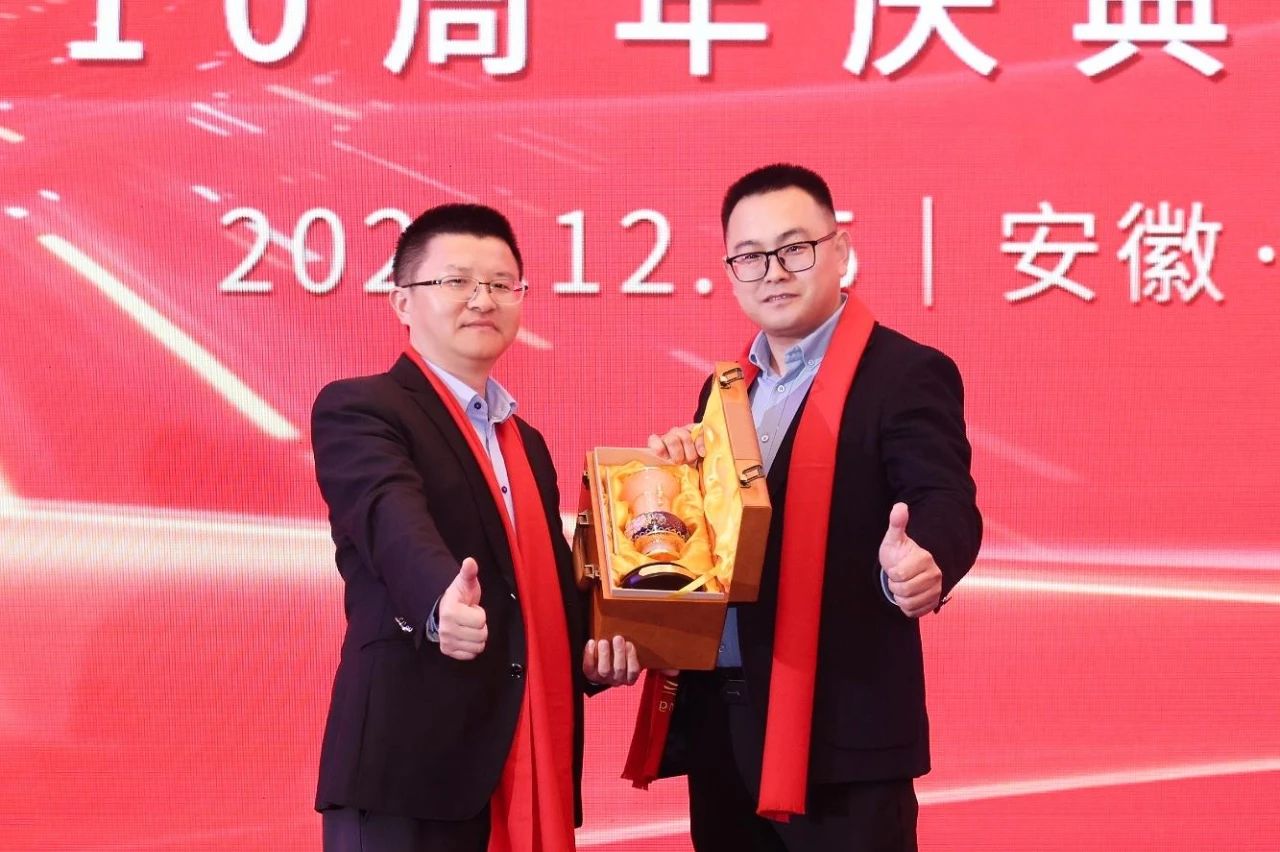 在本次大会中,晶澳科技中国区分布式总经理曾海代表公司向烈阳光伏赠送了十周年贺礼。这份礼物不仅象征着双方亲密的战友情谊,更寓意着彼此携手共进的美好前景。