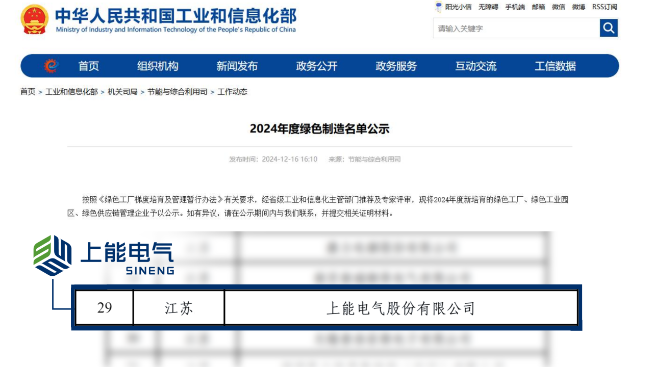 近日,经省级工业和信息化主管部门推荐及专家评审,国家工信部发布了“2024年度绿色制造名单公示”,上能电气成功入选“绿色供应链管理企业”榜单,江苏省仅有14家企业上榜。本次获评,也是上能电气继2017年被评为首批国家级“绿色工厂”后,再次获得国家级别的绿色制造认可。
