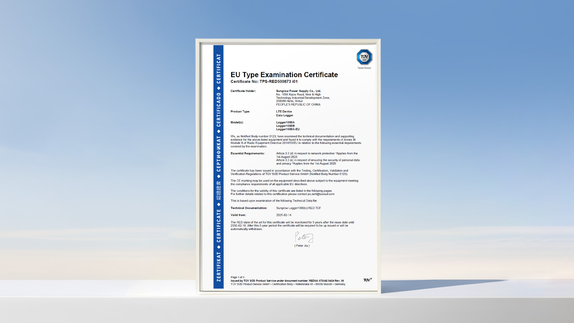 首当其冲!阳光电源Logger1000通过EN 18031欧盟网络安全认证