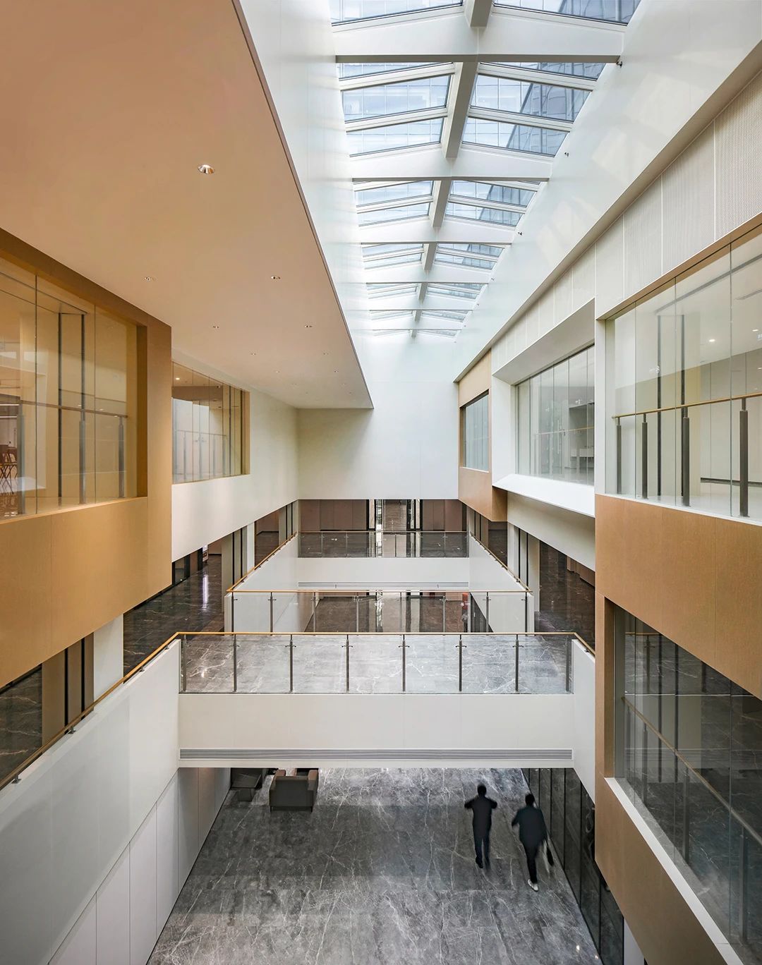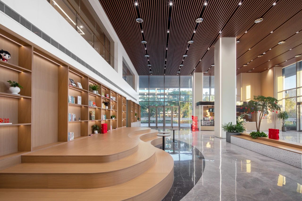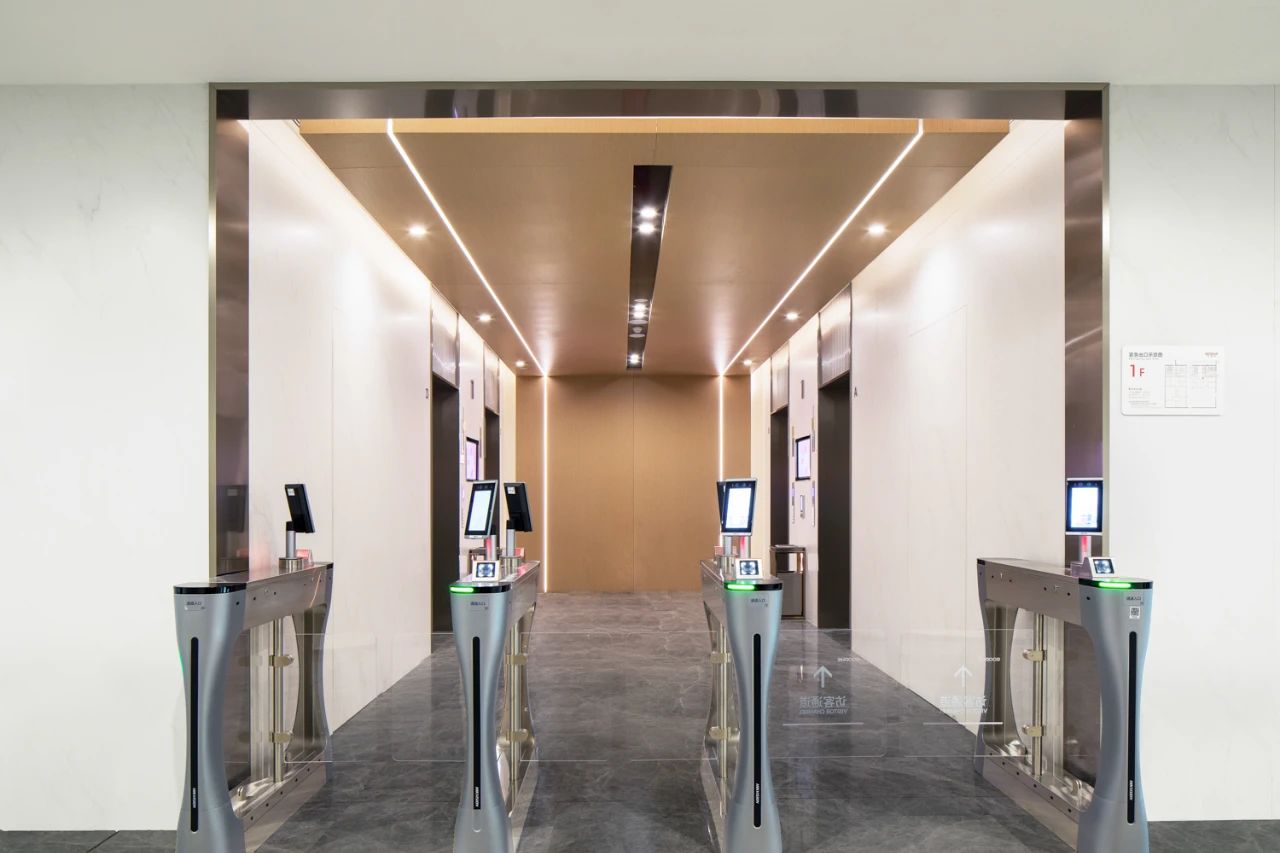 公共空间挑高十分充裕,浑然一体的线条光,引入青翠的绿植点缀其中,以此打造一个亲生物的高端接待空间。也让置身其中的人们最大程度的感受人与自然的链接,消除人与人之间的距离感。