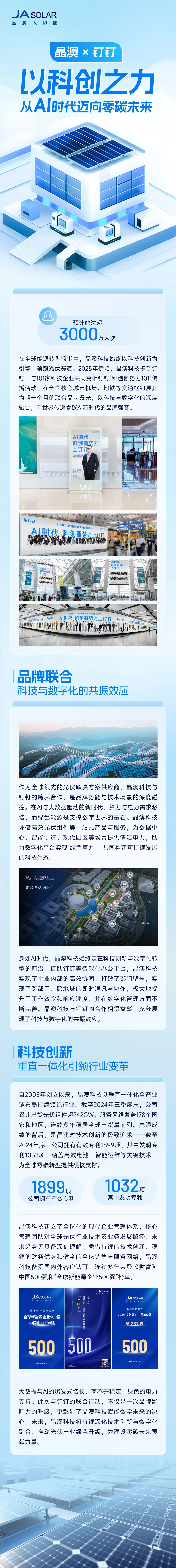 科技&数字化共振!晶澳携手钉钉从AI时代迈向零碳未来