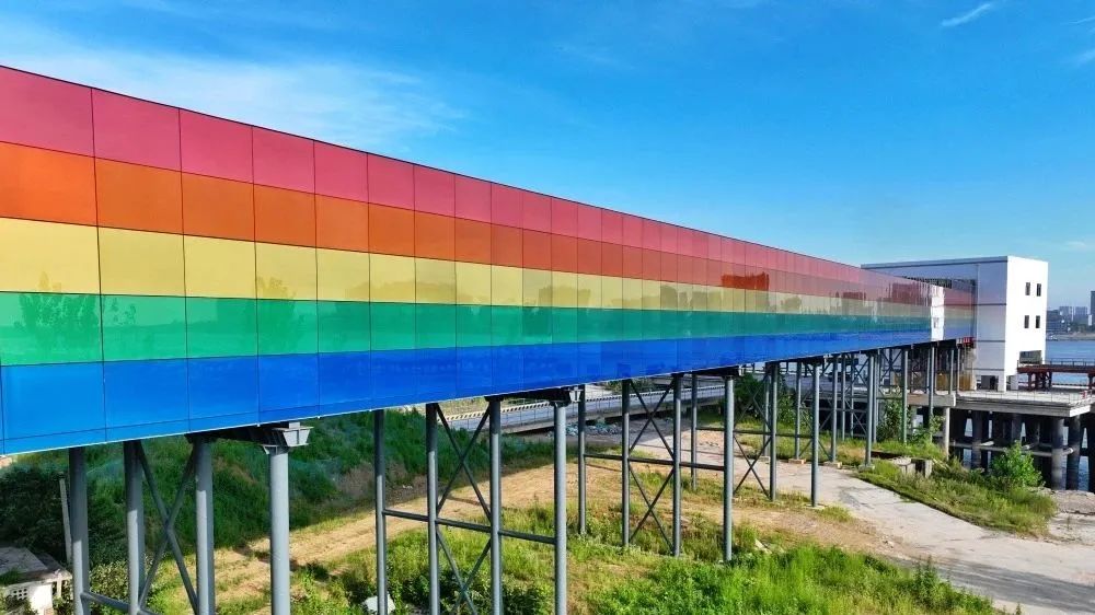 瑞昌码头廊道形象提升工程项目中,廊道的顶面和立面安装了碲化镉发电玻璃。