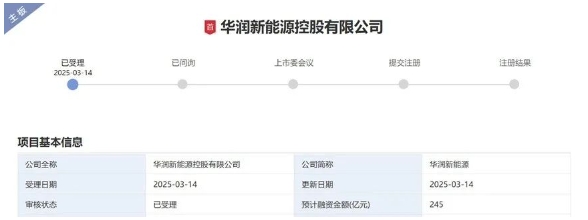 3月14日,深交所网站显示,华润新能源控股有限公司(以下简称“华润新能源”)主板IPO申请获深交所受理,这是今年受理的首单主板IPO项目。