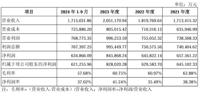 近年来,华润新能源业绩呈现稳健增长态势。财务数据显示,2021年—2024年前3季度,公司分别实现营业收入171.34亿元、181.98亿元、205.12亿元、171.50亿元;实现净利润65.76亿元、64.58亿元、84.59亿元、63.49亿元。毛利率稳定在60%左右。