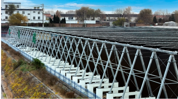 该智能充电站位于山西马厂镇长冶北高速路口旁,总容量2.045MW,采用上能电气SN系列多种规格光伏逆变器,以高效稳定、安全可靠的工商业光伏解决方案构筑零碳屋顶。横跨51米长的光伏车棚使用柔性支架和光伏组件,如一片钢铁梧桐林为来往的重型卡车撑起10000平方米的补给港湾。