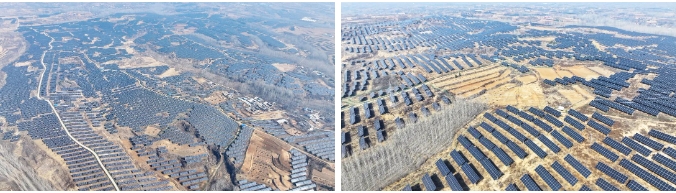 无人机掠过太行山脉,一排排光伏板正随着山势的起伏铺展开来。曾经植被稀疏的荒山坡地,如今已蜕变成为兼具发电与生态价值的“绿色银行”。