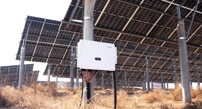 SOFAR 225KTL-HV三相大功率光伏并网逆变器,项目核心设备中的主角,使用12路MPPT设计,其最大转换效率高达99.02%,可主动灵活地适配山地复杂的地势条件,提高不同朝向的组件阵列的发电量,提升电站的发电效率。同时,整机采用IP66及C5防护等级,可适应不同恶劣环境,有效延长机器使用寿命。另外,机身支持智能远程升级及I-V扫描,可精准定位故障,助力电站高效运维。