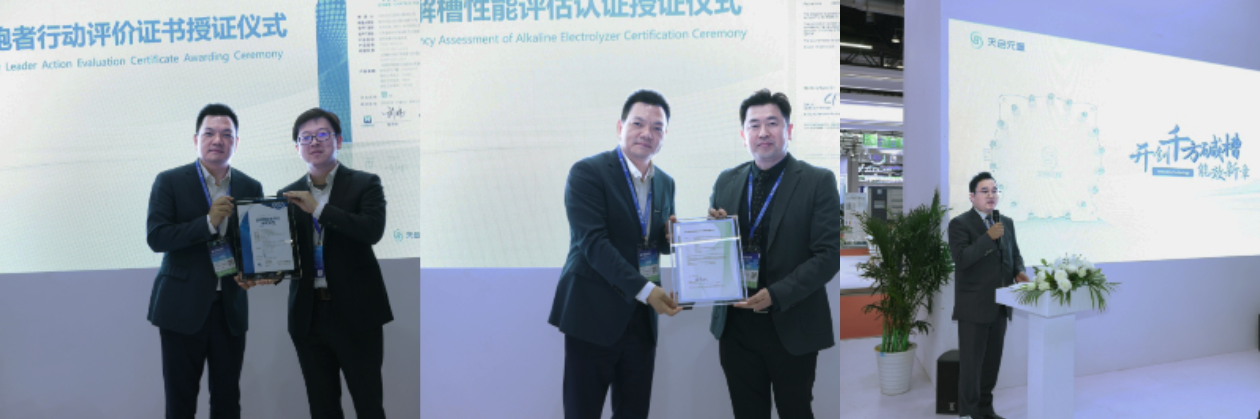 天擎二代装备通过电极材料创新、流场仿真优化、智能控制算法三大核心技术突破,实现了从设备性能到系统协同的全面升级。设备关键性能已经通过氢能联盟领跑者行动和德凯质量双重认证。天合元氢总裁段顺伟在展会现场表示,“我们的目标是通过智能化装备推动绿氢成本下降,助力‘双碳’目标实现。”
