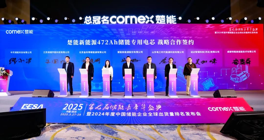 472Ah的卓越性能得到了行业的高度认可。在发布会现场,楚能与金风零碳、山东电工时代、运达智储、中天储能、领储宇能、特隆美储能六家企业集中签署战略合作协议,就472Ah储能电池产品项目应用达成全面战略合作,实现了产品首发即签约的盛况。
